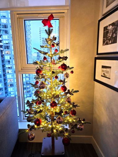 2024 was our first “real” Christmas in Calgary. We had moved into our condo and were beginning to get familiar with the city, though I still couldn’t get used to the incredible cold. For the first time in our lives, we didn’t have a real Christmas tree. Back in Vancouver, we’d drive to a tree farm; Klaus would carry a saw, and I’d wander the lot until we found the perfect tree. But now, in our apartment building, real trees aren’t allowed. That meant getting an artificial one — a first for us. Honestly, I was a bit horrified at first!